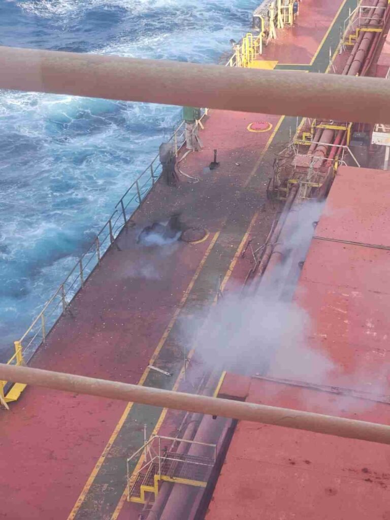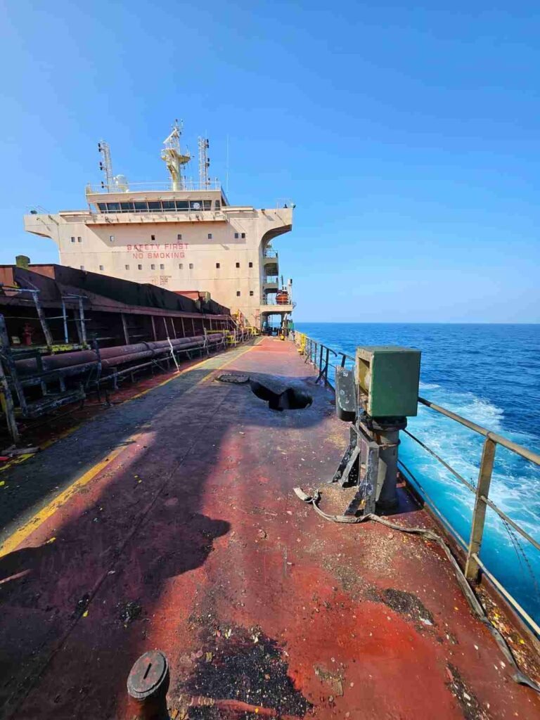 Через кілька годин після атаки зв’язок із берегом, компанією та МТО був відновлений, повторних атак не сталося. Десь через чотири години ми змогли вийти на палубу для огляду пошкоджень і вимірювання рівня пального в баластових танках. На щастя, витоків палива чи пробоїн не було. Основними ушкодженнями стали деформація корпусу в районі п’ятого трюму, численні фугасні пошкодження на носі судна, на кранах та палубі.
